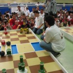 Cette année, les robots jouent au bowling. Une couleur de quilles est attribuée à chaque équipe. Pour gagner la partie, les robots doivent renverser leurs quilles. Au départ, celles-ci se trouvent de l’autre côté d’un fossé. Les robots peuvent aussi relever les quilles, de la couleur adverse, renversées par l’autre équipe. L’équipe qui a le plus de quilles de sa couleur renversées en fin de match est déclarée vainqueur.