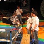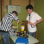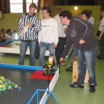 Cette année, les robots trient des déchets. Il y a trois sortes de déchets à ramasser : des bouteilles, des canettes et des piles. Chaque équipe se voit attribuer une couleur : rouge ou bleu. Chaque équipe a deux poubelles : une pour les bouteilles et une pour les canettes. De plus, il y a un panier partagé pour les piles. Lorsqu’un robot ramasse un déchet sur la table, il doit le transporter à la poubelle correspondante, l’y déposer et recommencer.